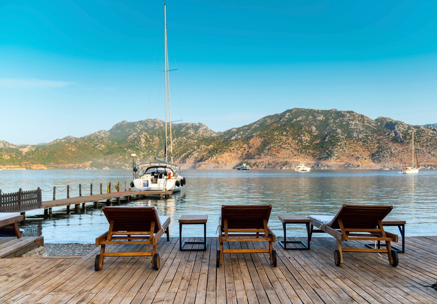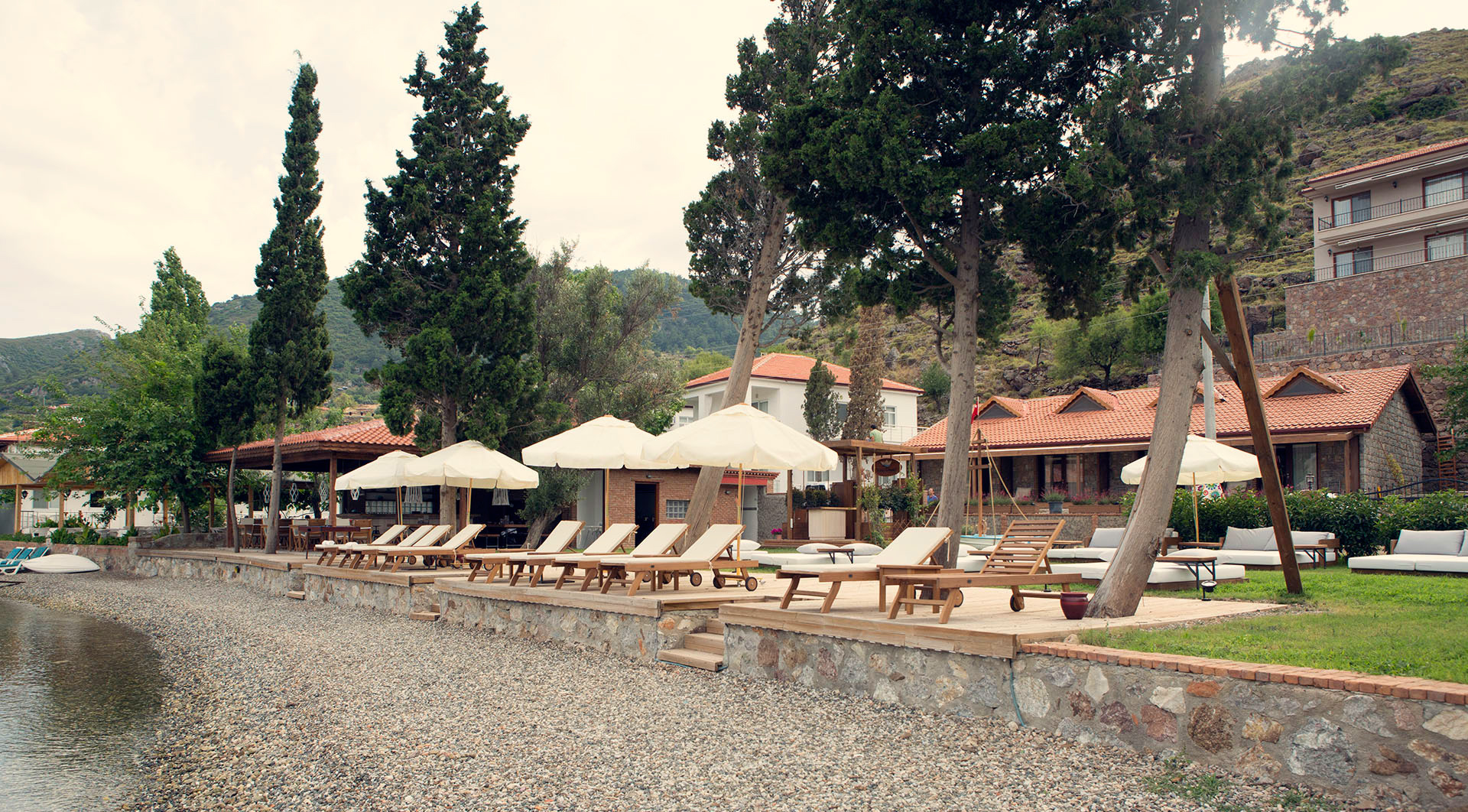 1000 m² büyüklüğündeki özel plajı ile sizlere deniz ve güneşle doyasıya kucaklaşabileceğiniz keyifli bir ortam sunuyor. İsterseniz kocaman bir selvi ağacının gölgesinde çim alanda, isterseniz denizin hemen yanında ya da iskelenin üstünde kitabınızı okurken Selimiye Köyünün insana huzur veren atmosferini içinizde hissedebilirsiniz.